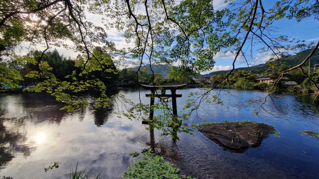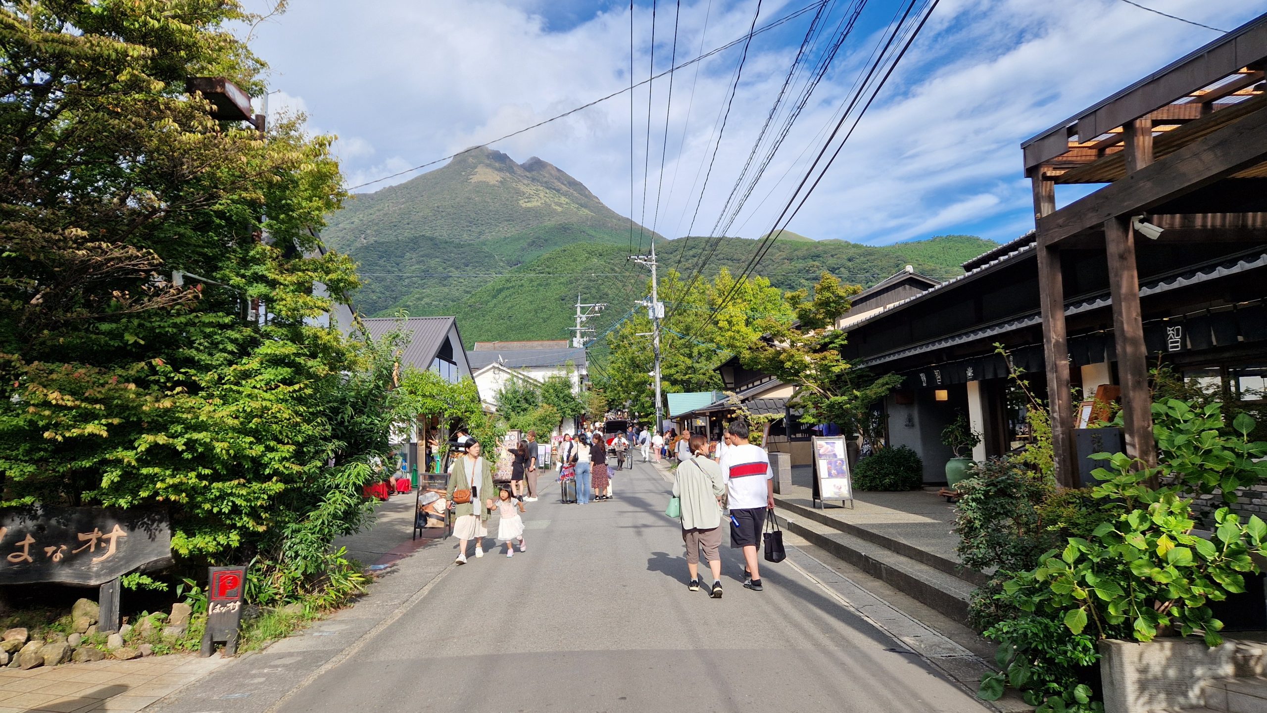 Wir fahren nach Beppu, in einem Regionalzug, der so stark schaukelt, dass mir schlecht wird. Dort stellen wir unser Gepäck ab und steigen direkt in den nächsten Zug, für einen Halbtagesausflug nach Yufuin. Kaum angekommen merken wir, dass dieses Städtchen zu 100% dem Tourismus unterworfen wurde. Über dem Ort thront der Berg Yufu-dake mit seinem markanten Doppelgipfel. Die Hauptstraße ist ausschließlich von Souvenirläden gesäumt. Wir lassen uns treiben. Fast am Ende der Straße befindet sich das Yufuin Floral Village. Hier wurden kleine Hütten, in rustikaler Optik, zu einer Miniaturwelt zusammengestellt, wie sie in einem Anime vorkommen könnte. Was auf Fotos hübsch aussieht, ist in Wahrheit ein großer Merchandise Laden. In jeder der Hütten liegen bergeweise Plüschtiere und zwischen den Häuschen werden echte Tiere unter zweifelhaften Bedingungen gehalten. Durch die kleinen Gassen quetschen sich die Touristen und ihre Kameras. Wir gehen weiter zu einem kleinen See am Ortsrand. Hier ist es ruhiger, besonders bei dem kleinen Schrein am gegenüberliegenden Ufer. Auf dem Rückweg gibt es noch einen kurzen Schreckmoment: Vor dem Bahnhof stehen hunderte Menschen Schlange (klar, irgendwie müssen die ganzen Touristen ja wieder nach Hause). Wir stellen uns auf eine unentspannte Fahrt ein. Am Bahnsteig merken wir, dass alle ganz woanders hinfahren als wir. Der Zug ist schön leer.