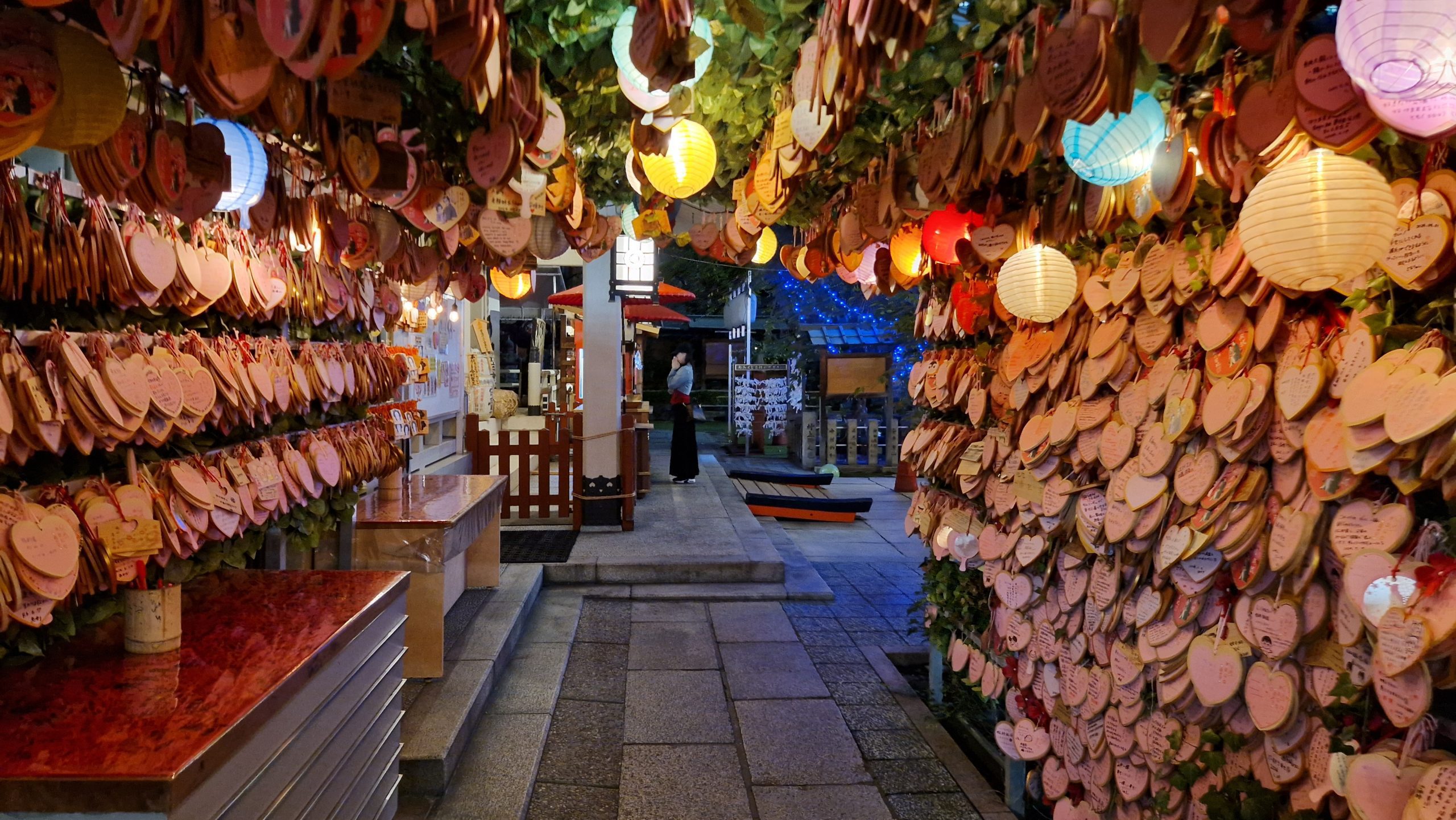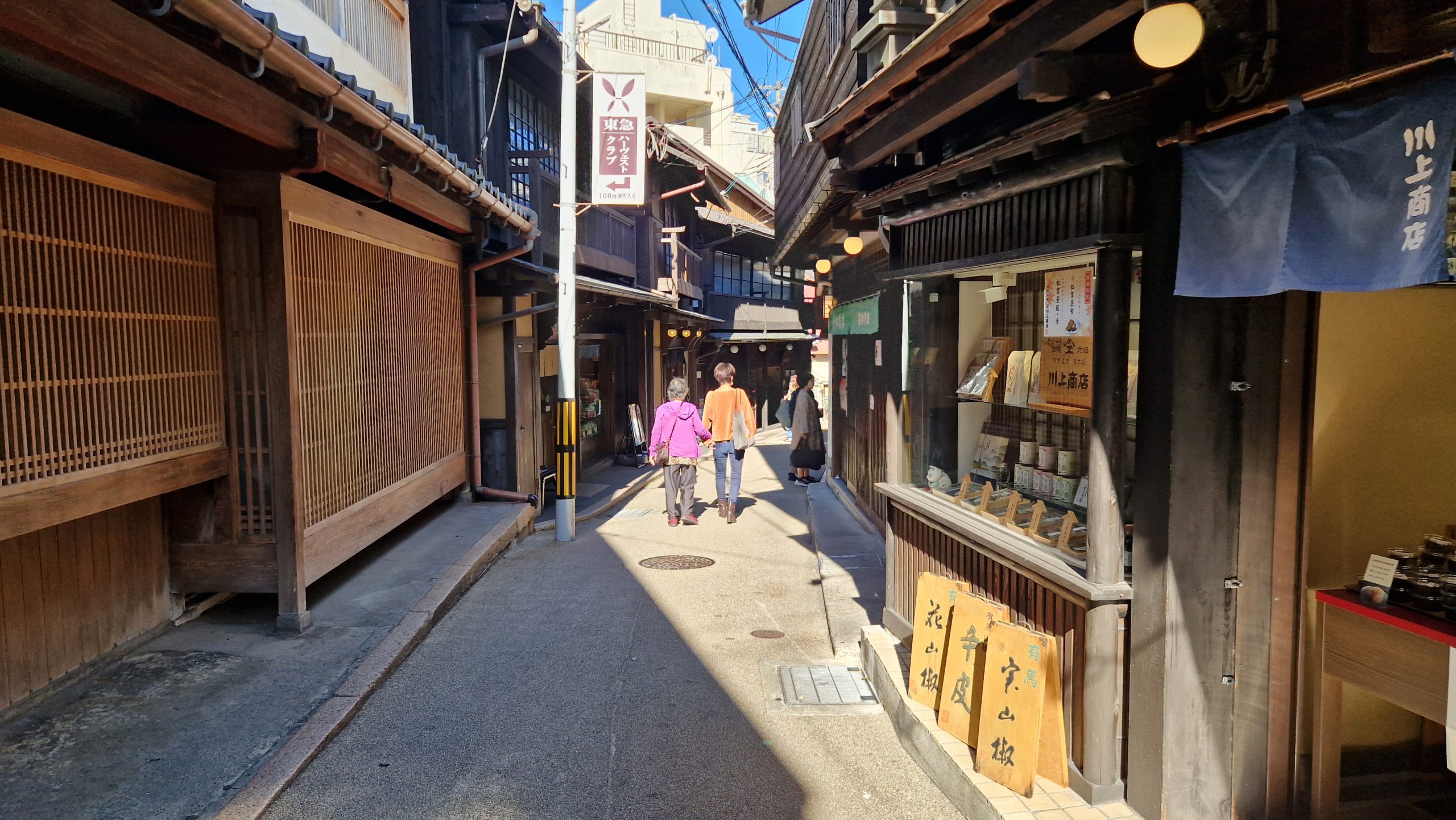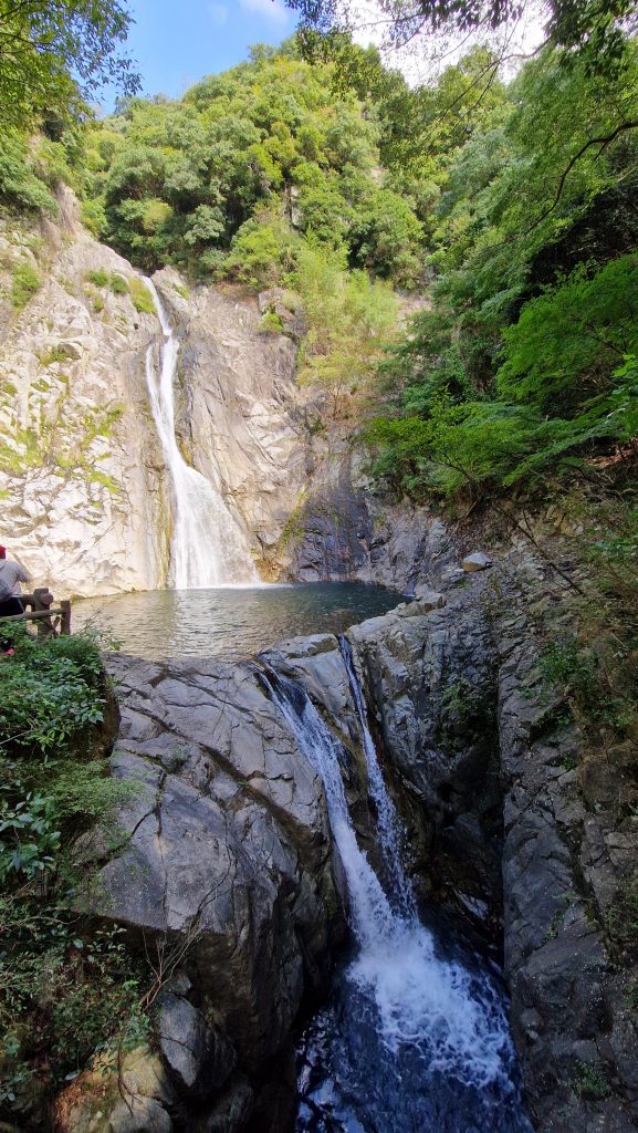 Am Stadtrand von Kobe liegen die Nunobiki Wasserfälle. Weil sie so gut und schnell erreichbar sind (direkt hinter dem Bahnhof Shin-Kobe), sind sie ein beliebtes Ausflugsziel. Der Wanderweg beginnt gleich hinter dem Bahnhofsgebäude, trotzdem irren wir eine ganze Weile herum, bis wir den im Untergeschoss versteckten Durchgang finden. Dann erreichen wir nach wenigen Minuten Laufweg den unteren Doppelwasserfall. Der weitere Weg entlang des Flusses ist aktuell gesperrt, stattdessen geht es über betonierte Serpentinen weiter den Berg hinauf. Dort liegen die anderen beiden (bekannteren) Wasserfälle, der oberste ist der größte. Ab hier ist der Pfad ein bisschen naturbelassener. Wir kommen an einem kleinen Stausee vorbei und erreichen schließlich den unteren Eingang der Herb Gardens. Im Hang sind hier wunderschöne Blumenbeete und Nutzpflanzengärten angelegt. Wir laufen langsam an den bunten Blüten vorbei und genießen die Sonne. Am oberen Ende befindet sich ein Restaurant und ein Souvenirladen (es gibt sogar Topfpflanzen zu kaufen) und die Gondelstation, von der aus wir zurück nach Kobe schweben. Mit einem to-go Mittagessen im Gepäck fahren wir weiter nach Arimaonsen. Wie der Name schon verrät, gibt es in diesem Bergdorf heiße Quellen. Die Hauptstraße ist von touristischen Läden gesäumt. Unser Hotel liegt im ruhigeren, oberen Teil des Ortes. Direkt gegenüber befindet sich eines der beiden öffentlichen Badehäuser. Kurz nach Sonnenuntergang gehen wir rüber und wärmen uns im Thermalwasser auf.