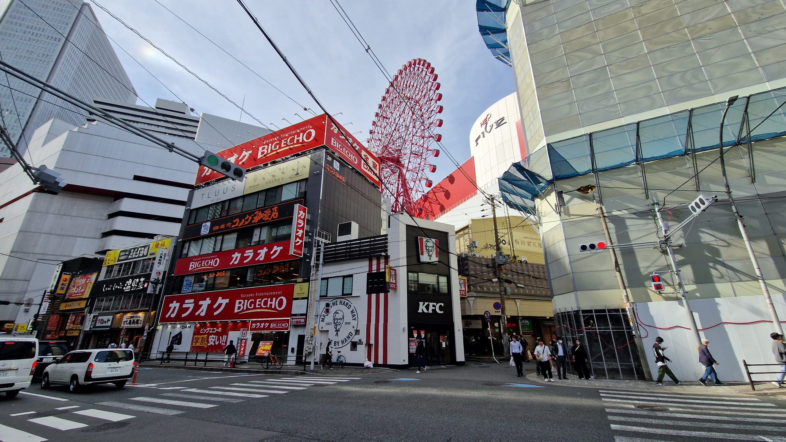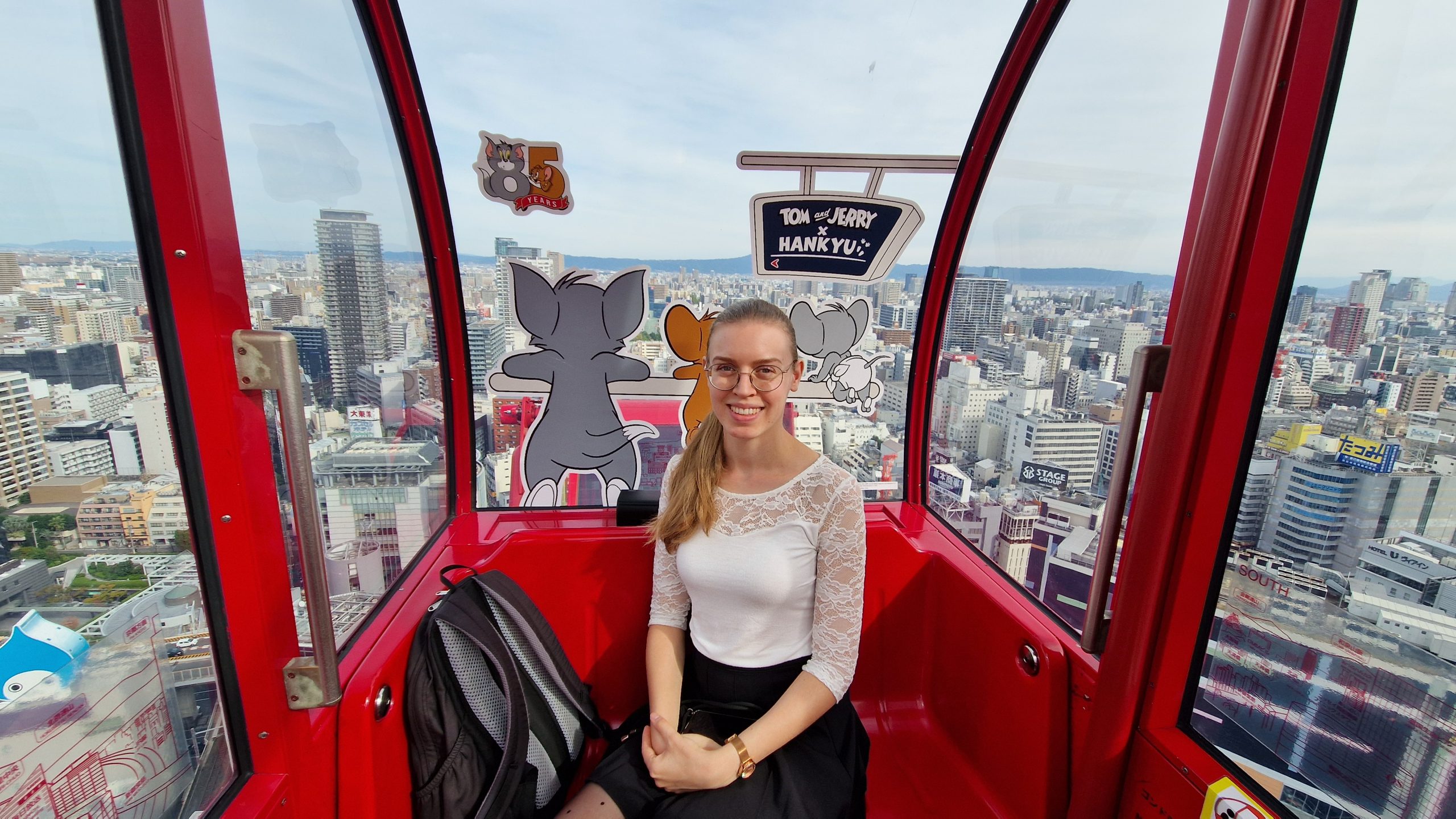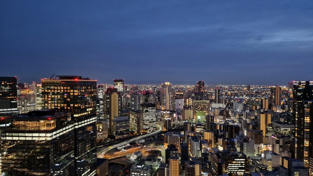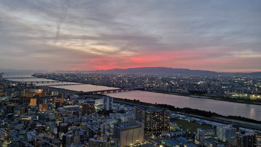 Der letzte Tag in Japan beginnt mit einem großen Frühstücksbuffet. Danach fahren wir ins Cup Noodle Museum. Die „Ausstellung“ ist übersichtlich und nur japanisch beschriftet. Die eigentliche Attraktion ist die Möglichkeit aus verschiedenen Zutaten eine eigene Suppe zu kreieren. Es ist zwar ganz lustig, aber insgesamt sind wir ein bisschen enttäuscht. Zurück im Hotel testen wir den Pool. Das Wasser ist eiskalt, wir bleiben nur kurz. Auf der Suche nach etwas zu essen kommen wir am Riesenrad auf der Hep Five Shopping Mall vorbei und beschließen spontan mitzufahren. Hoch über der Stadt haben wir einen guten Blick auf Fluss, Bahnhof und die umliegenden Hochhäuser. Am Nachmittag wollen wir ein paar Souvenirs und Mitbringsel einkaufen gehen. Doch irgendwie werden wir in den zahlreichen Malls rund um den Bahnhof nicht so richtig fündig. Stattdessen irren wir wieder in den vielen Untergrundpassagen herum und suchen nach dem Weg. Zum Sonnenuntergang besuchen wir das Umeda Sky Building. Zwischen seinen beiden Türmen spannt sich im 40sten Stockwerk eine riesige Plattform. Wir sehen wie der rote Himmel langsam dunkler wird und die Lichter in der Stadt angehen. Ein schöner Abschluss für unsere Reise.