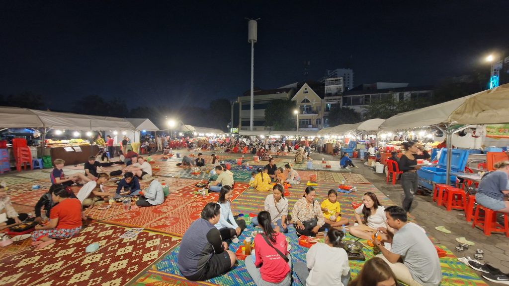 Direkt auf Höhe des Palastes mündet der Tonle Sap Fluss in den Mekong. Von hier aus laufe ich zurück. Die bereits erwähnte Promenade ist um diese Uhrzeit voller Stadtbewohner, die Snacks verkaufen. Morgen werden wir mal wieder Bus fahren. Es geht in den Süden des Landes.