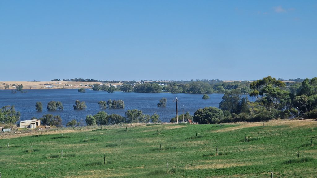 Von Melbourne nach Adelaide fahren wir mit dem „Overland“ Zug, der auf dieser Strecke seit 135 Jahren verkehrt. Die Waggons sind womöglich nicht mehr die gleichen wie damals, aber trotzdem altmodisch. Unsere digitale Reservierungsbestätigung wird in eine handgeschriebene Fahrkarte umgewandelt. Alle Fahrgäste bekommen erst am Bahnsteig ihre Sitze zugeteilt. Es gibt ziemlich viele Zugbegleiter, die vor jeden Halt ein paar Hintergrundinformationen zu der jeweiligen Kleinstadt geben. Wer aussteigen möchte, muss rechtzeitig Bescheid geben und wird dann hinausbegleitet. Die Landschaft ist ein bisschen trockener als auf unserer ersten Zugfahrt, sonst ähnlich. Nur kurz vor Adelaide gibt es eine Besonderheit: Der Murray River hat das umgebende Schutzgebiet überschwemmt, man sieht so viel Wasser wie wohl selten in Australien. Dank einer Stunde Verspätung erreichen wir unser Ziel nach 11,5 Stunden Fahrt.