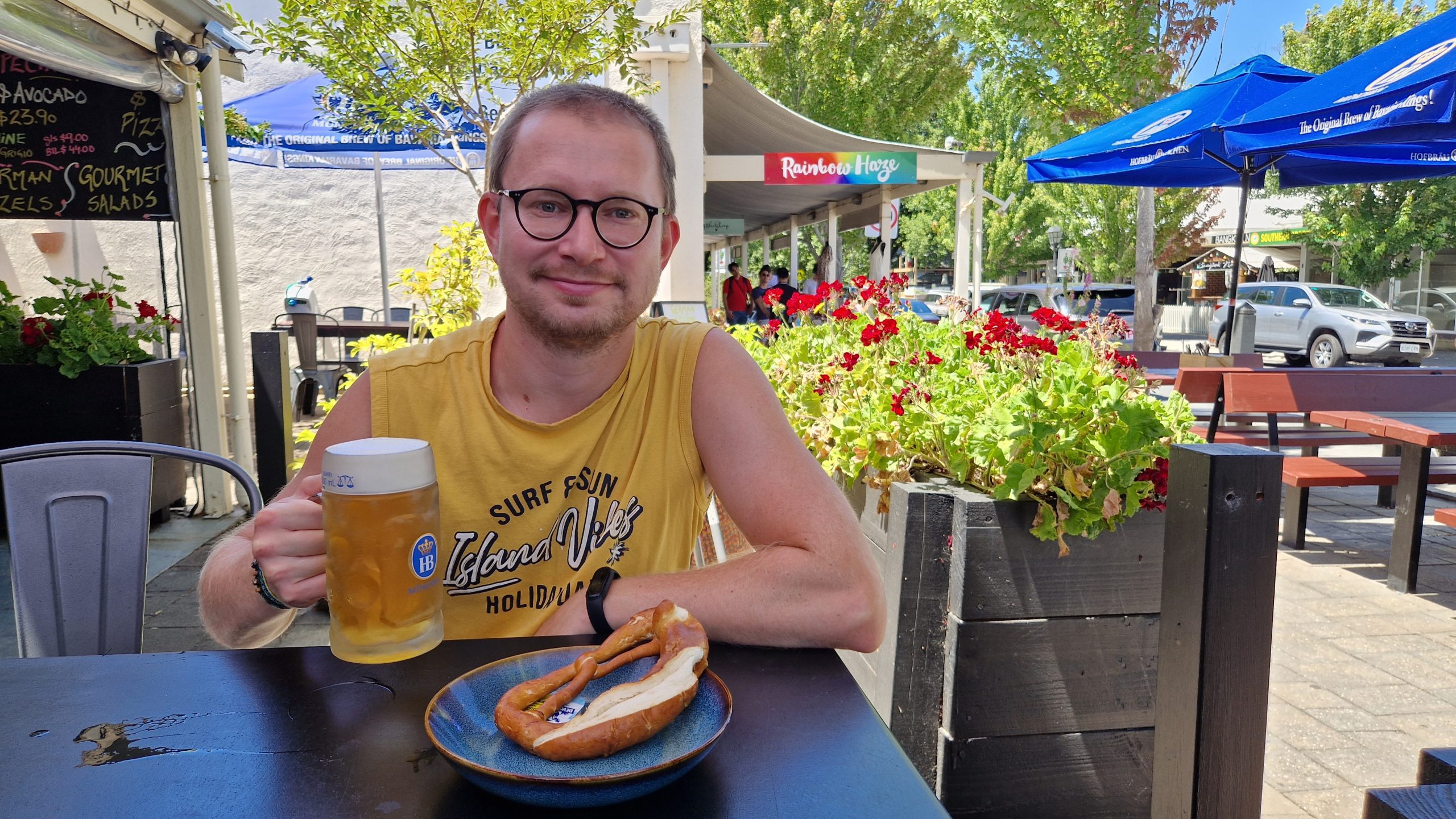 Am dritten Tag fahren wir nach Hahndorf. Die Siedlung wurde im 19. Jahrhundert von deutschen Auswanderern gegründet und soll noch heute sehr deutsch sein. Man wird am Ortseingang auch so begrüßt: „Willkommen in Deutschland“ steht auf einem Schild. Der Ort ist klein, die Sehenswürdigkeiten und Geschäfte liegen alle entlang der Hauptstraße. Nur ein paar Bauernhöfe (Steichelzoo, Erdbeerenpflücken, Kunstausstellung) liegen so weit außerhalb, dass ein Auto praktisch wäre. Wir schlendern also nur durchs Zentrum, trinken Hofbräu Bier (schmeckt sehr gut) und essen Breze (schmeckt sehr schlecht). Obwohl alle Restaurants deutsche Spezialitäten auf der Karte haben (vor allem Würstchen und Schnitzel), kommt es uns hier nicht annähernd so deutsch vor, wie wir erwartet hätten. Viele der Läden sind auch geschlossen. Am Ende verbringen wir die meiste Zeit auf dem Minigolfplatz.