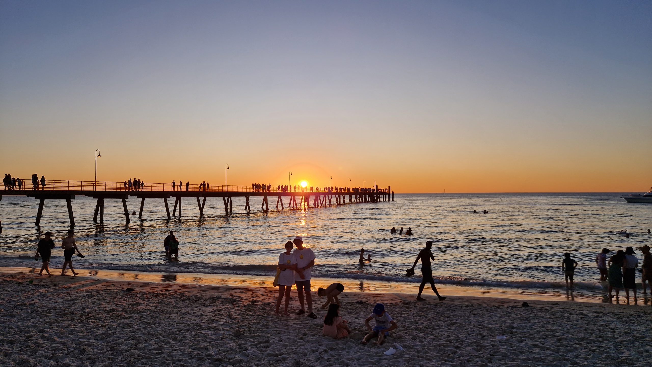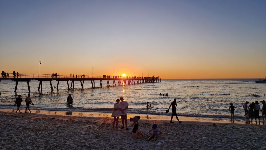 Es ist wie verhext, gerade ging es uns besser, jetzt ist Patrick schon wieder krank. Während er im Bett liegt, erkunde ich den kleinen, aber sehr hübsch angelegten, japanischen Himeji Garden. Anschließend schlendere ich noch durch die Läden von Chinatown, die direkt neben dem Central Market liegen. Am Abend kann ich Patrick zumindest noch überreden mit nach Glenelg zu fahren. Die Tram hält dort direkt am Strand. Wir schauen der einheimischen Jugend zu, die vom Steg ins klare Wasser springt, genießen ein kühles Getränk in der Strandbar und schauen dann dem Sonnenuntergang zu.