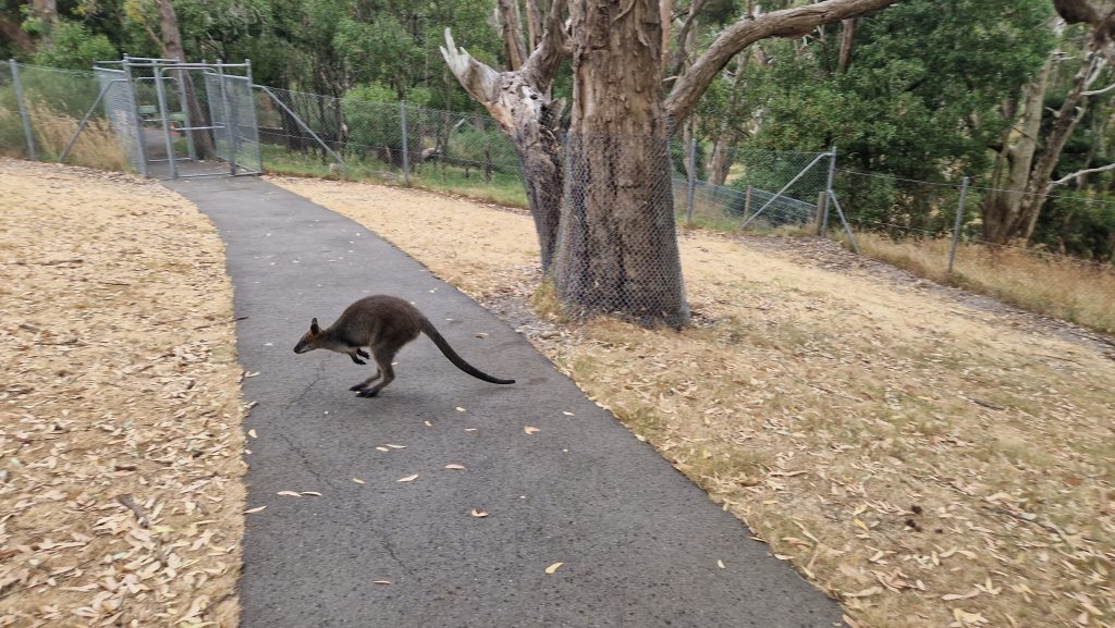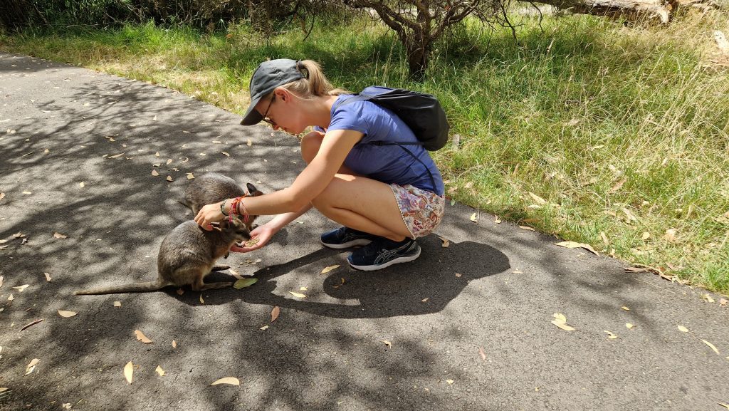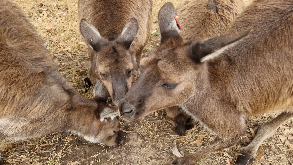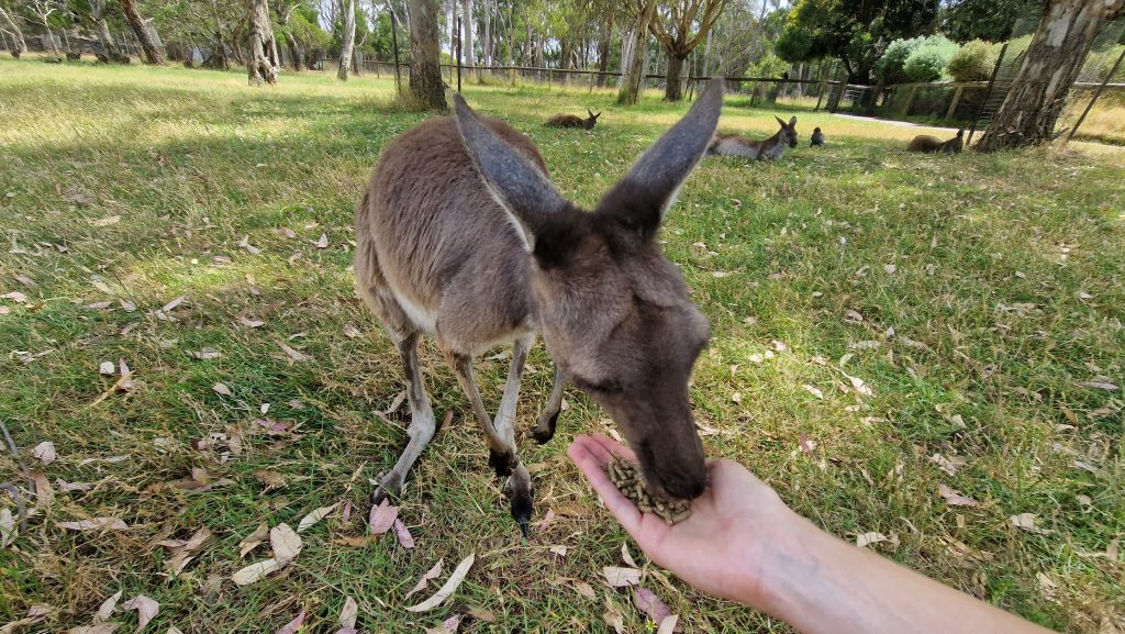 Auch den nächsten Tag verbringe ich alleine. Es ist mühsam mit dem Bus zum Cleland Wildlife Park zu kommen (fährt selten und lange), aber es lohnt sich. Hier gibt es eine ganze Reihe australischer Tiere zu bewundern, viele davon in offenen Gehegen. Wegen der Hitze (36 Grad) darf man heute keine Koalas halten, aber dafür bin ich eh nicht hier. Ich will die Kängurus sehen. Und hier gibt es sieben Arten (von über sechzig). Zuerst bekomme ich eine kostenlose (und private) Führung zu den Tieren, die in abgetrennten Bereichen leben (u.a. Kakadus, Dingos und Wombats). Dann laufe ich mit Futter ausgerüstet alleine weiter. Die winzigen Wallabies sind besonders süß, die Felswallabies bunt und scheu. Die Kängurus, die auf Kangaroo Island leben, sind erst zögerlich, aber dann so gierig, dass sie mich fast umwerfen. Emus sehe ich leider nur aus der Ferne, von Nahem dafür Echidnas (nächster „Verwandter“ des Schnabeltiers).