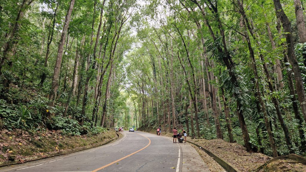Wieder auf festem Untergrund durchqueren wir den Man-Made-Forest. Hier wurde auf einem begrenzen Abschnitt ein ganzer Wald aus Mahagony-Bäumen gepflanzt. Der Anblick der vielen gleichförmigen Stämme ist wirklich ungewöhlich. Das bedeutet aber auch, dass zahlreiche Leute mitten auf der Straße stehen, um ein gutes Foto machen zu können. Dann erreichen wir eines der Wahrzeichen der Insel Bohol: Die Chocolate Hills. Eine Karstlandschaft, in der die Erosion hunderte, quasi identische Hügel, zurück gelassen hat. In der Regenzeit sind sie hellgrün bewachsen, in der Trockenzeit vertrocknen die Pflanzen und färben sich schokoladenbraun. Aktuell liegt die Farbe irgendwo dazwischen.