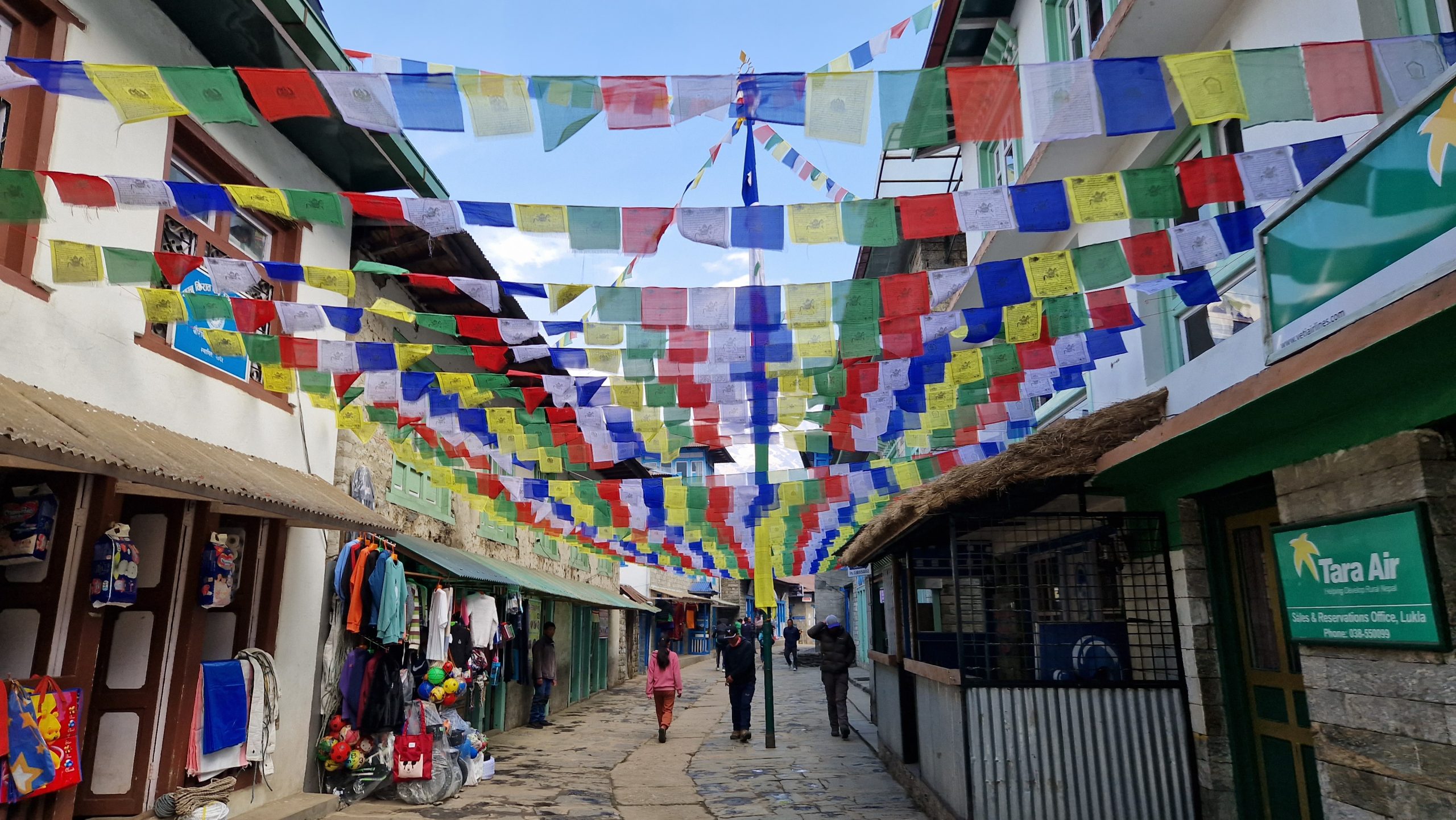 In Namche Bazaar kann man alles an Wanderausrüstung kaufen, was man womöglich in Kathmandu vergessen hat. Da eine Kälteeinbruch voraus gesagt ist, machen wir von dieser Möglichkeit gebrauch. Wenn es allen gut geht, werden wir morgen weiter aufsteigen.