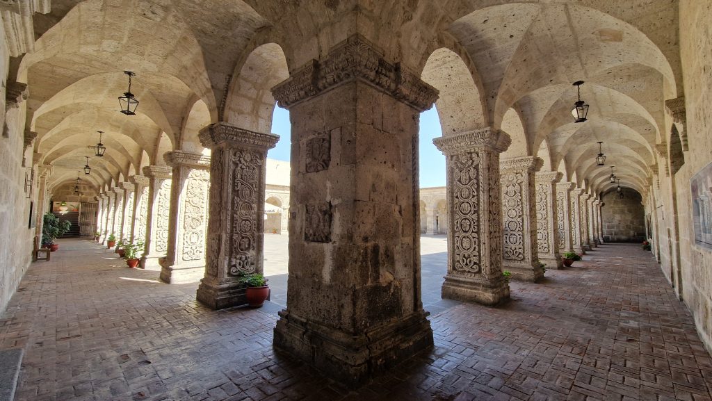 Arequipa wird auch die weiße Stadt genannt. Tatsächlich sind die Kolonialbauten in der Altstadt überwiegend weiß, da sie aus Sillar, einem Vulkangestein, gebaut wurden. Die Plaza de Armas hier ist riesig, und die mit Abstand schönste von allen peruanischen Städten. Nummer eins Attraktion in Arequipa ist das Monasterio de Santa Catalina. Das im 16. Jahrhundert gegründete Kloster ist ein wahres Labyrinth aus Gassen, Zimmern und rußgeschwärzten Küchen. Mit seinen buntgestrichenen Wänden und den vielen Blumentöpfen ist es ein beliebtes Fotomotiv. Außerdem enthält es eine größere Sammlung religiöser Kunstwerke.