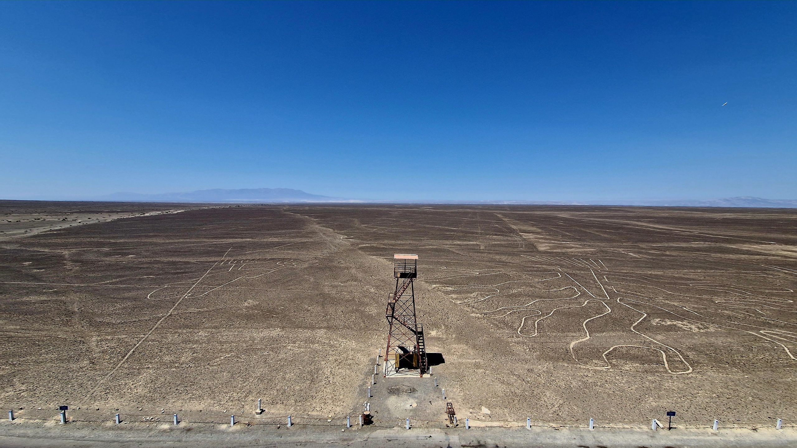 Die zweite Nachtbusfahrt in Peru bringt uns nach Nazca. Frühmorgens ist die Stadt noch wie ausgestorben, im Lauf des Tages wird es immer voller und lauter, überall öffnen Marktstände und kleine Geschäfte. Nazca ist kaum touristisch und das merkt man. Hierher kommt nur, wer die berühmten Linien im Wüstenboden sehen möchte. Den Chesna-Flug leisten wir uns nicht. Dafür nimmt uns ein Reisebus ein paar Minuten mit hinaus in die Wüste. Zu dem kleinen Aussichtsturm, der den Blick auf drei der Geoglyphen ermöglicht. Zurück können wir glücklicherweise bei einer peruanische Familie ins Auto steigen. Bis der nächste Bus kommt kann es 30-40min dauern. Abends besuchen wir das Planetarium, das Infos rund um die Nazca-Linien und die Forscherin Maria Reiche zeigt.