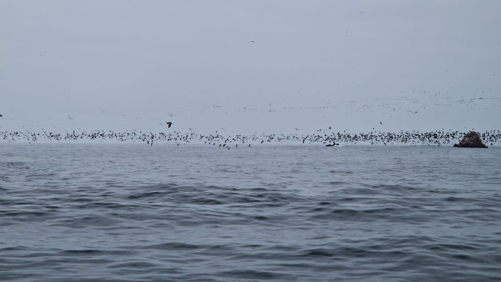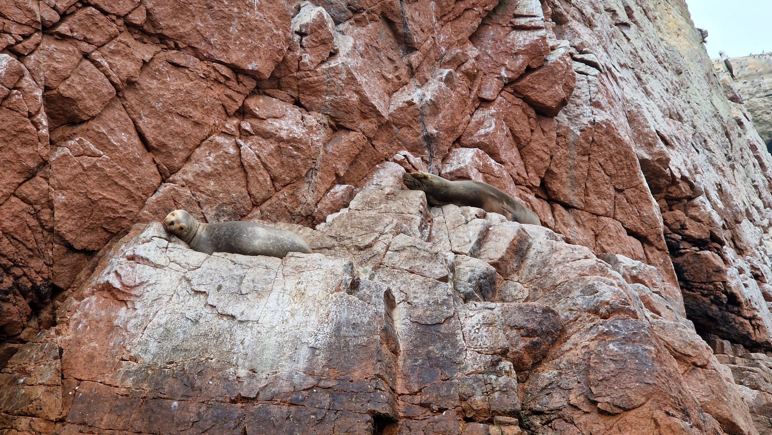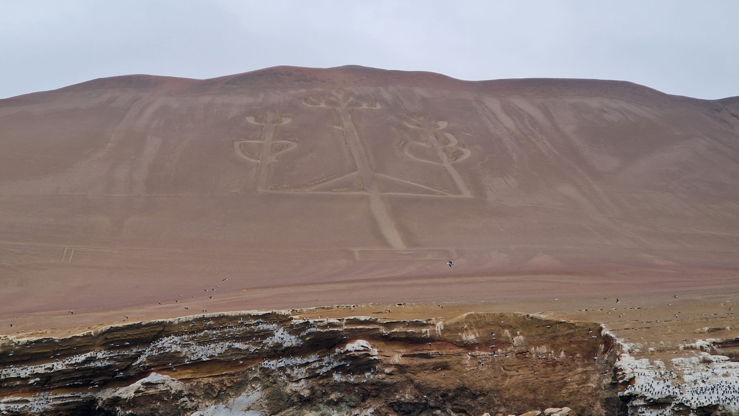 Letzte Station in Peru: Paracas. Eine Küstenstadt mitten in der Wüste. Dass sie klein und teuer ist wussten wir. Trotzdem ist es der einzige Ort im Land, der mich enttäuscht hat. Es gibt nur die Hauptstraße mit touristischen Restaurants, eine Promenade am vermüllten Strand (Hafenbecken letztendlich) und ungeteerte Nebenstraßen, wo die Einheimischen wohnen. Krasse Gegensätze, obwohl auch viele Peruaner hier Urlaub machen. Es gibt genau zwei mögliche Aktivitäten: Im Bus oder mit dem Fahrrad durch den angrenzenden Nationalpark fahren und die Bootstour zu den Islas Ballestas. Für eine entspannte Radtour reicht unsere Zeit hier nicht aus, also machen wir nur die Bootstour. Meine Erwartungen sind nicht hoch, aber ich bin positiv überrascht. Nach einem kurzen Stopp vor einer weiteren Geoglyphe unbekannten Alters, umrunden wir die Vogelinseln. Das Areal ist erstaunlich groß und die zerklüfteten Felsen sind an sich schon hübsch anzusehen. Aber die Bewohner sind noch faszinierender. Alle lieben die Humboldt-Pinguine, wir sehen knapp dreißig von ihnen! Es gibt dutzende weiterer Vogelarten (kenne mich mit Namen nicht so aus), die den Himmel füllen und die Felsen bedecken. Außerdem Seelöwen, die faul herum liegen. Unser Guide macht uns auch auf Muscheln, Krabben und Seesterne aufmerksam. Nach zwei Stunden sind wir wieder an Land. Es hat sich definitiv gelohnt!