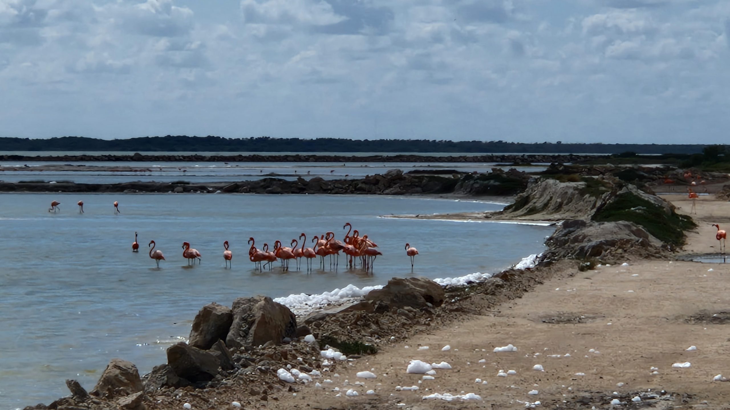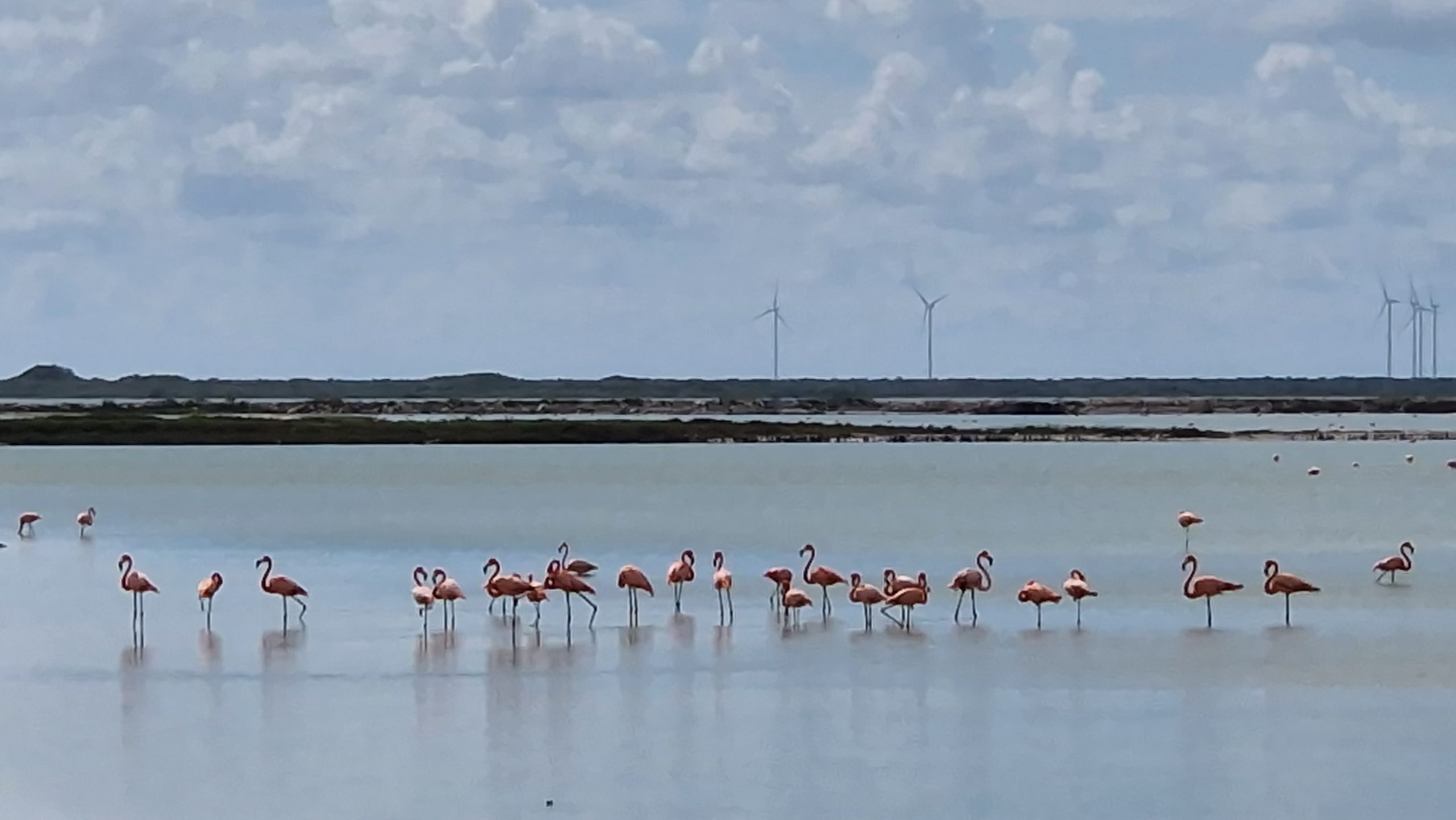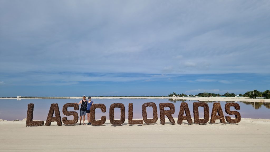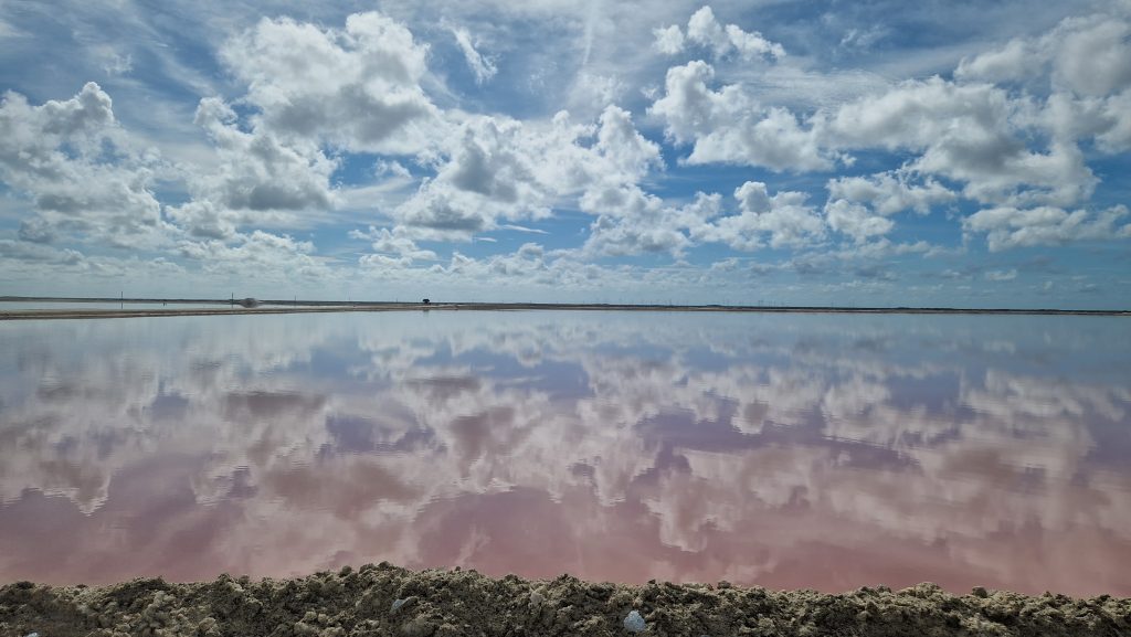 Las Coloradas, ist knapp 2 Stunden von Valladolid entfernt. Nach einer erstaunlich guten Übernachtung, in einem offenen Bungalow direkt am Meer, ging es zu den Salzseen. Die farbigen Seen, aus denen Salz gewonnen wird sind sehr sehr pink. Die Fotos können die Farbe nur schwer wiedergeben. Die von uns gebuchte Tour mit dem Fahrrad war jedoch eher Sinnlos. Man darf leider nur einen kleinen Teil des Geländes besichtigen, welchen man ohne Probleme in 30min zu Fuß begehen kann. Dann spart man sich 5€… Das zweite Highlight in Los Coloradas waren die Flamingos, nur 8km Fahrt entfernt sieht man hunderte dieser Tiere in freier Wildbahn.